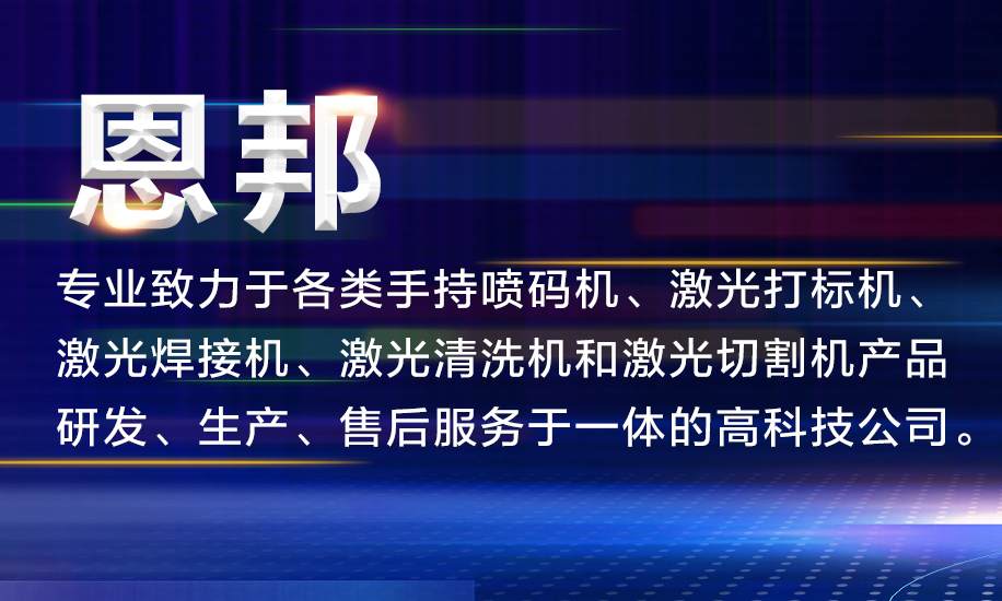 煙臺恩邦電子科技有限公司全系列手持噴碼機,手持激光打標機,飛行激光打標機,手持寬幅噴碼機,手持激光焊接機,手持激光清洗機,手持大字...